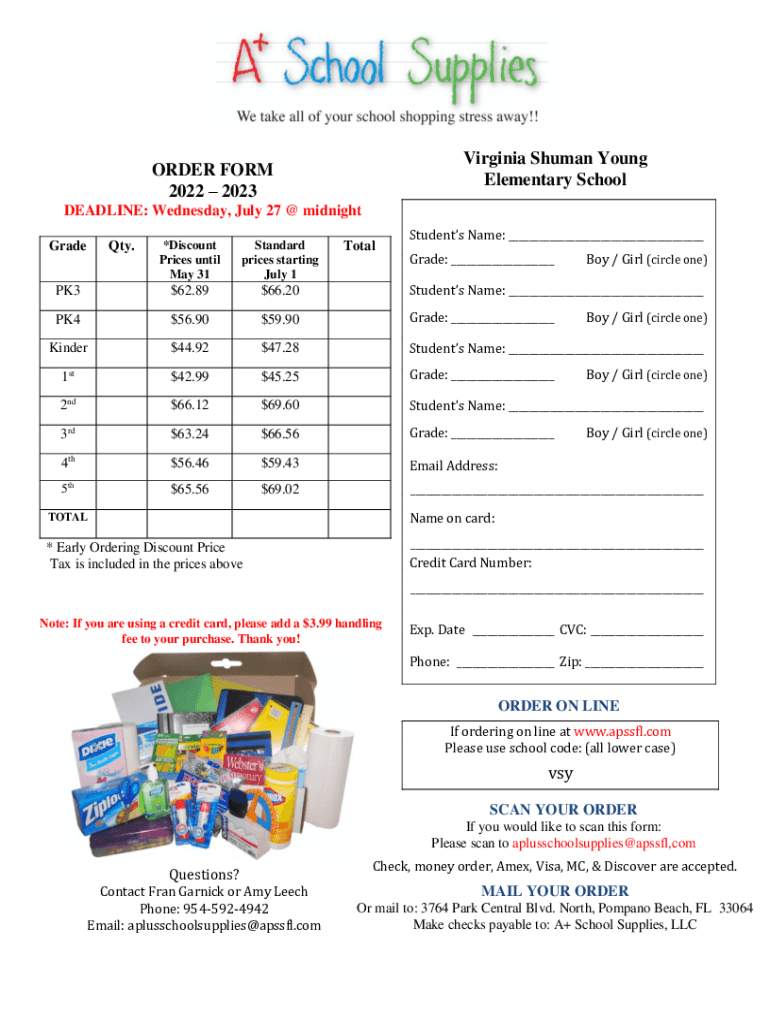 Get the free Virginia Shuman Young Elementary School ORDER FORM ...