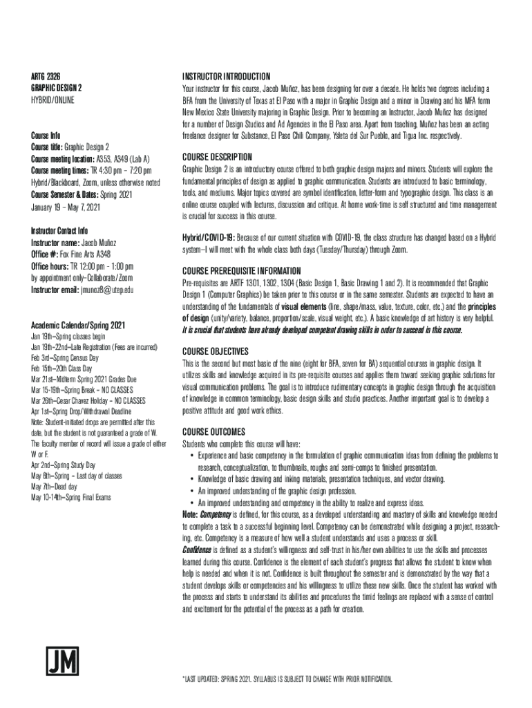 Get the free ARTG 2326 GRAPHIC DESIGN 2 HYBRID/ONLINE Course Info