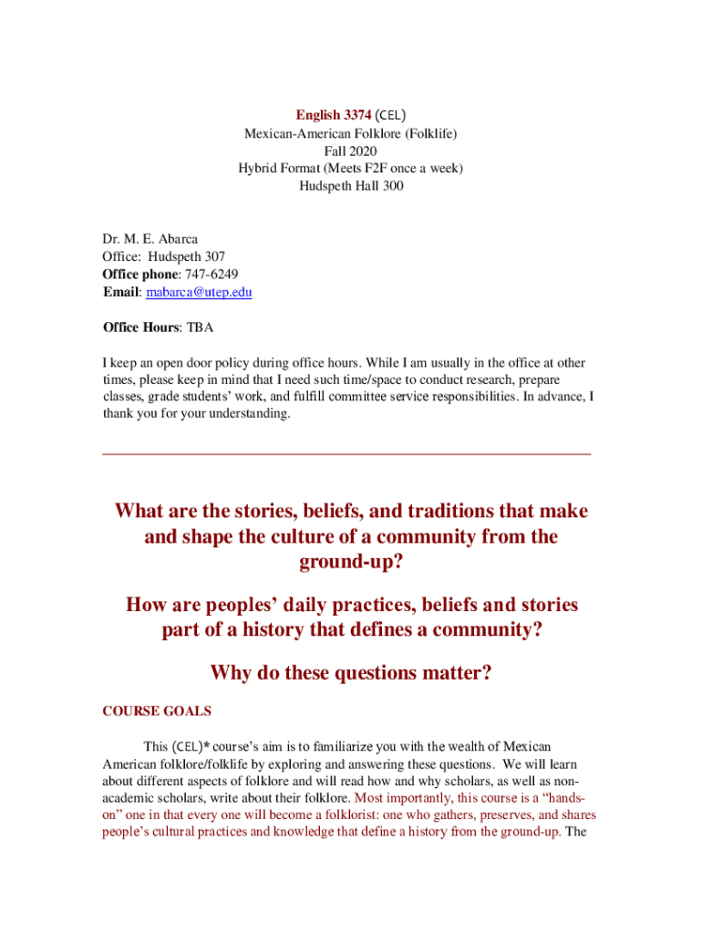Students who are enrolled in or have completed courses related to folklore and public culture may be required to submit assignments or projects.