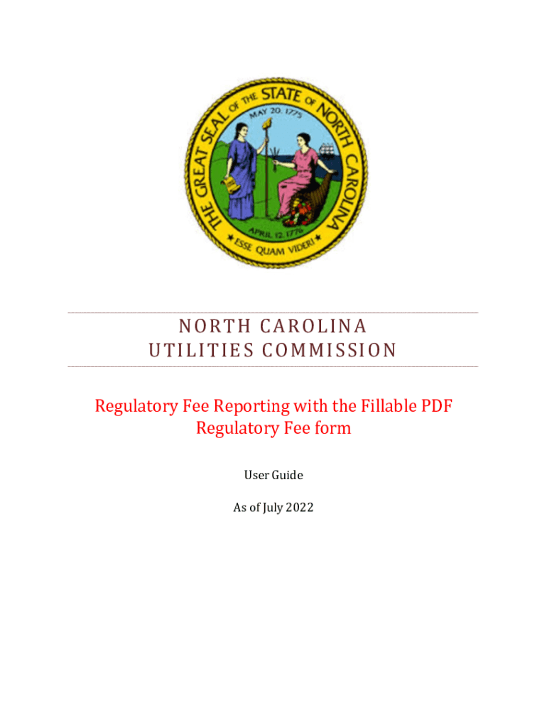 NORTH CAROLINA UTILITIES COMMISSION Regulatory Fee Reporting with the Fillable PDF Regulatory Fee form User Guide As of July 2022Table of Contents General Regulatory Fee Reporting Information3 Using