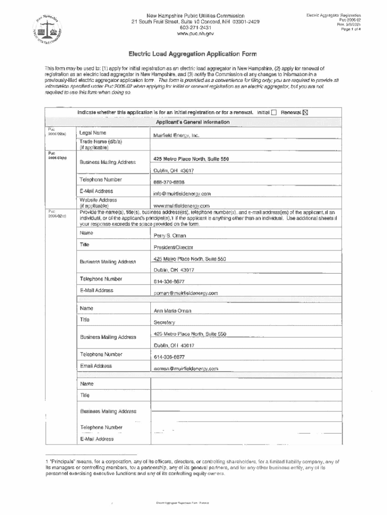 New Hampshire Public Utilities Commission 21 South Fruit Street, Suite 10 Concord, NH 033012429 603271 2431 www.puc.nh.govElectric Aggrega10, Registration Puc2006.02 Rev. 5/612021-Page 1 of 4Electric
