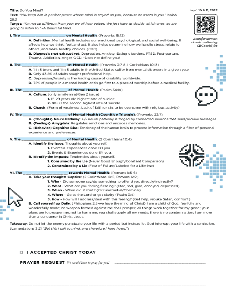 Title: Do You Mind? Text: You keep him in perfect peace whose mind is stayed on you, because he trusts in you. Isaiah 26:3 Target: I'm not so different from you; we all hear voices. We just have to