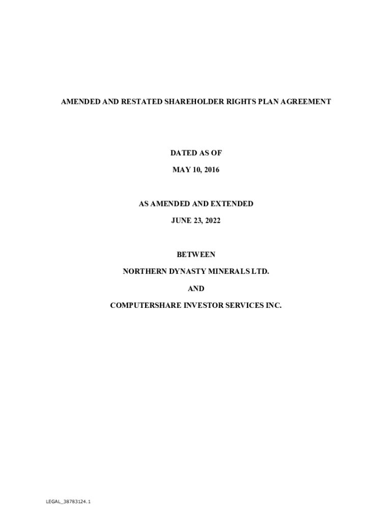 Get the free northerndynastyminerals.comsiteassetsAMENDED AND RESTATED SHAREHOLDER RIGHTS PLAN AG...