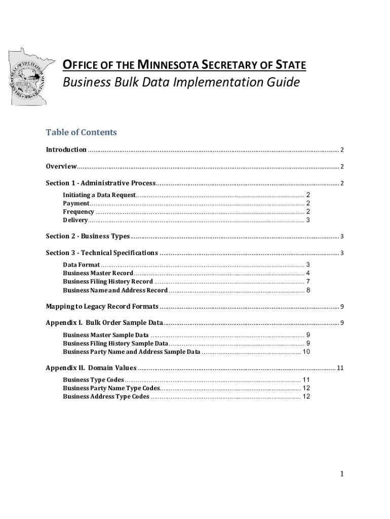 Get the free Business Bulk Data Implementation Guide - sos.state.mn.us