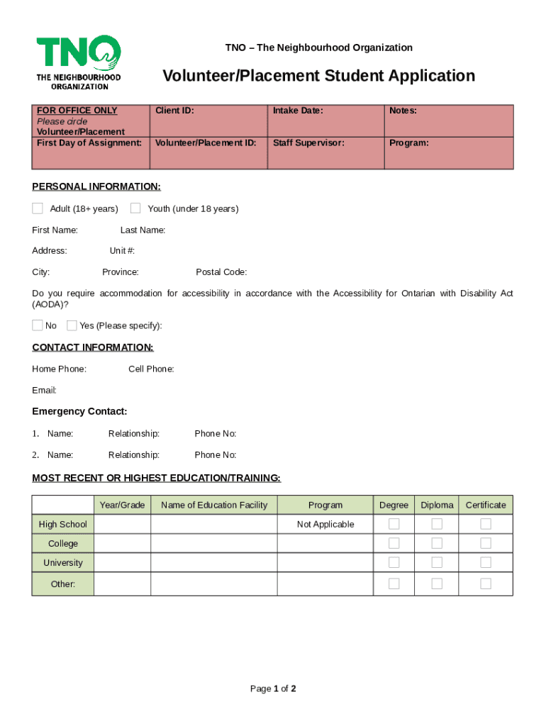 Template tno-toronto.orgwp-contentuploadsVolunteer/Placement Student Application - TNO Toronto instructions