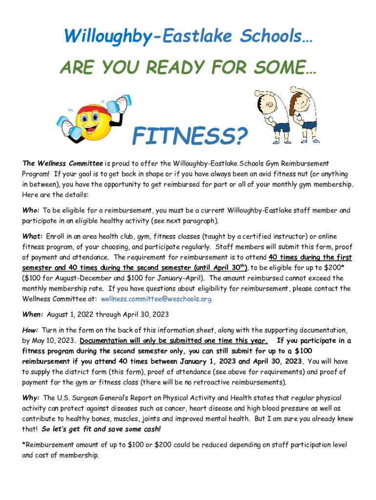 The Wellness Committee is proud to offer the WilloughbyEastlake Schools Gym Reimbursement