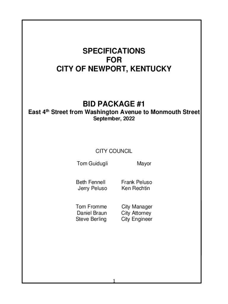 SPECIFICATIONS FOR CITY OF NEWPORT, KENTUCKY PACKAGE #1 East4thStreet from Washington Avenue to Monmouth Street September, 2022CITY COUNCIL Tom GuidugliMayorBeth Fennel Jerry PelusoFrank Plus Ken