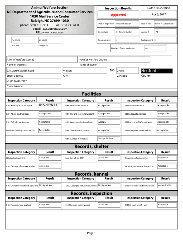 Get the free NCDA&CS Veterinary Division Hertford County Animal Welfare Inspection ...