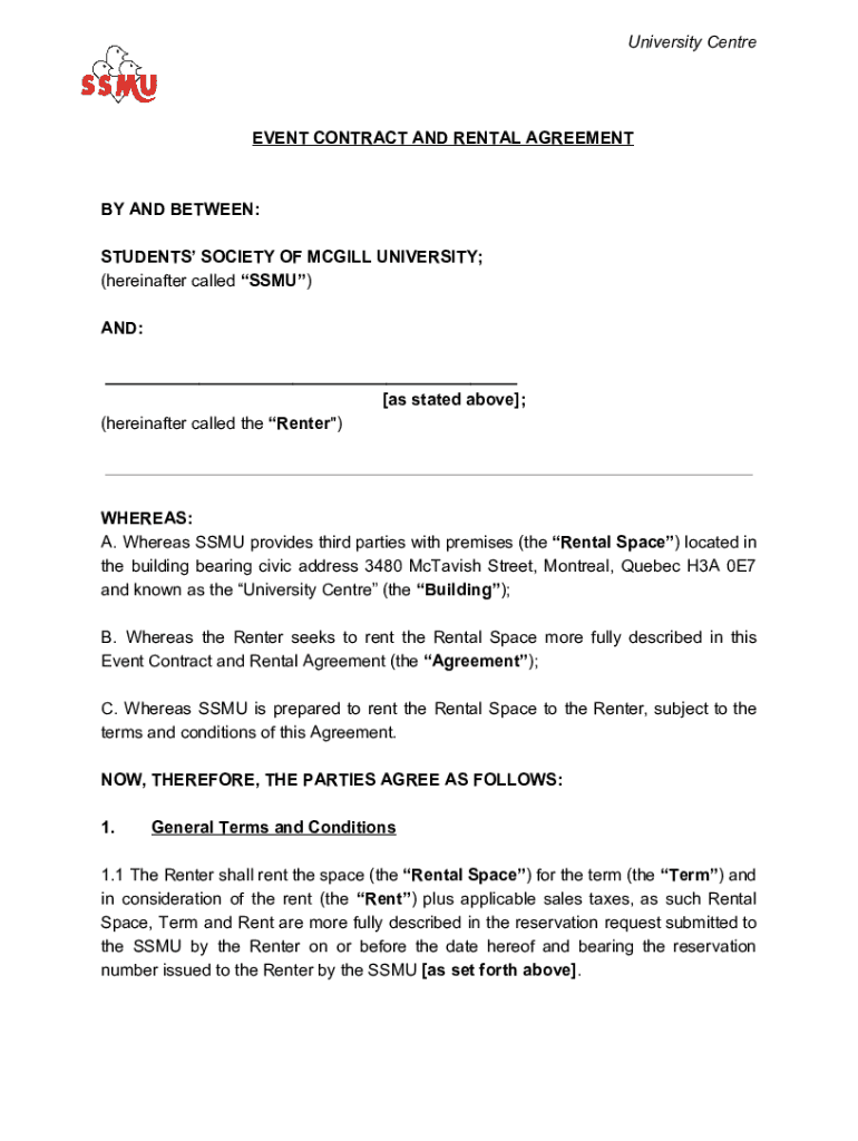 University CentreEVENT CONTRACT AND RENTAL AGREEMENT AND BETWEEN:
