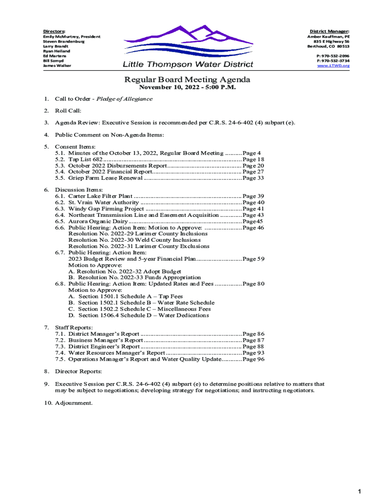 Directors:DistrictManager:EmilyMcMurtrey, President Steven Brandenburg Larry Brandt RyanHeiland Martens BillSzmyd JamesWalkerAmberKauffman, PE 835EHighway56 Berthoud,CO80513 P:9705322096 F:9705323734