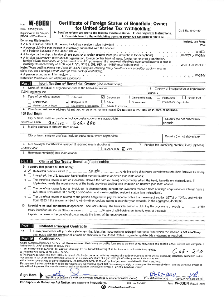 , \”\'., \” W\'8BEN(Rev. February 2006) Department of the Treasury internal Revenue ServiceGertificate of Foreign Status of Beneficial Owner for United States Tax Withholding OMB No. 15451621