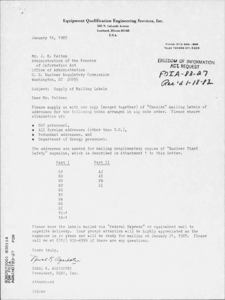 Get the free FOIA request for specific category of mailing labels for mailing ...