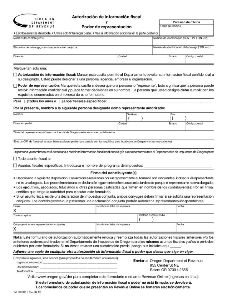 Clear Form Authorization DE information fiscal para us ode oficinaPoder de representacinFecha de recited Describe en tetras DE mode. Utilize SLO Tina Afro-American o Azul. Sea la information additional