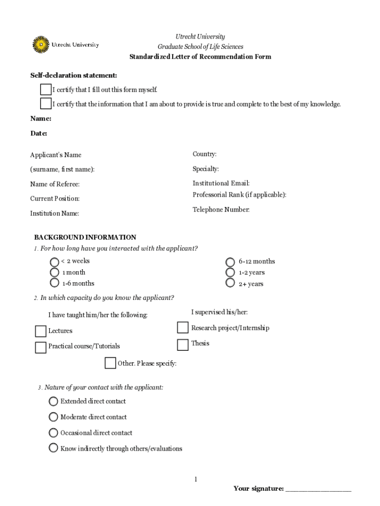 Standardized Letter of Recommendation Information for students who obtained their degree at a non-Dutch university Letters of recommendation can be submitted in 3 different ways: ask your referees