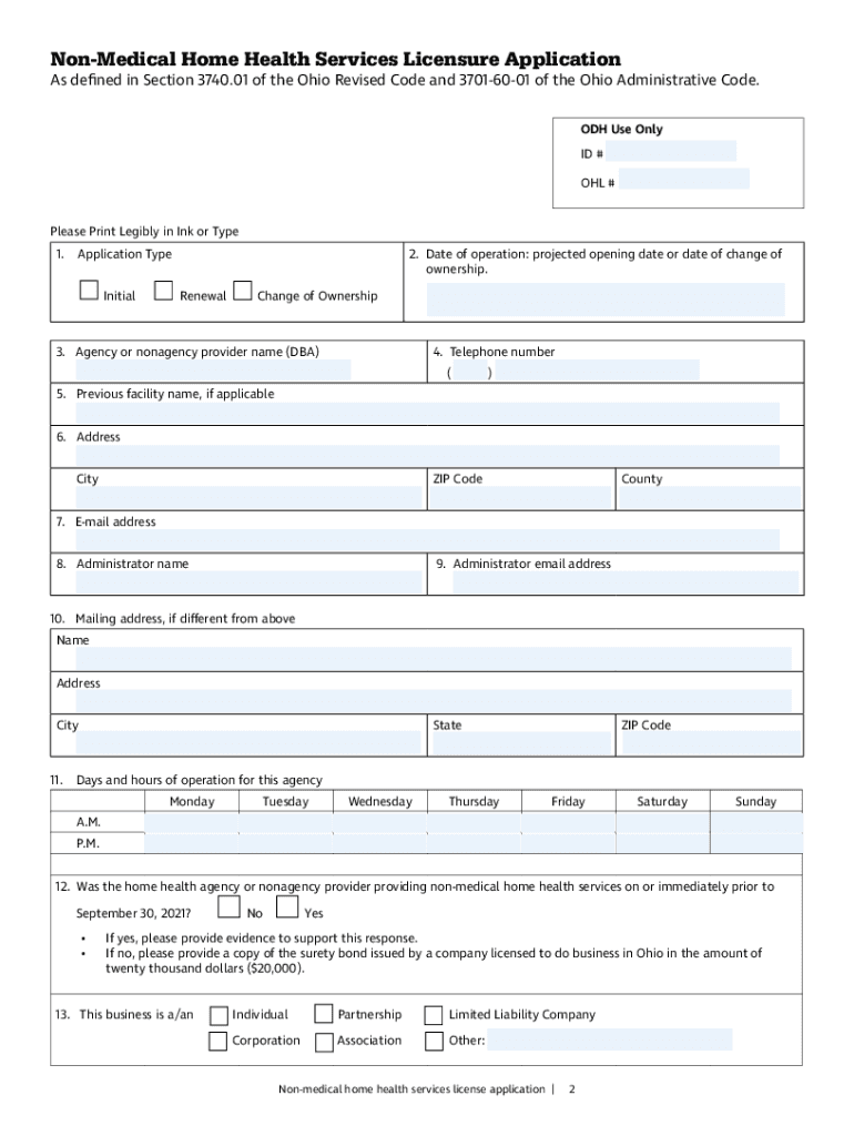 Get the free Non-Medical Home Health Services License Application - General ... - odh ohio