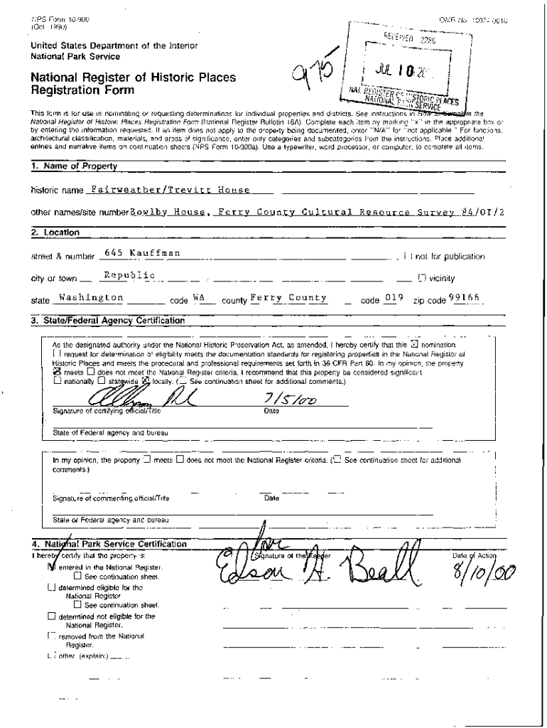NFS Form 10900 (Oct. 1990)United States Department of the Interior National Park ServiceNational Register of Historic Places Registration Form This form is for use in nominating or requesting determinations