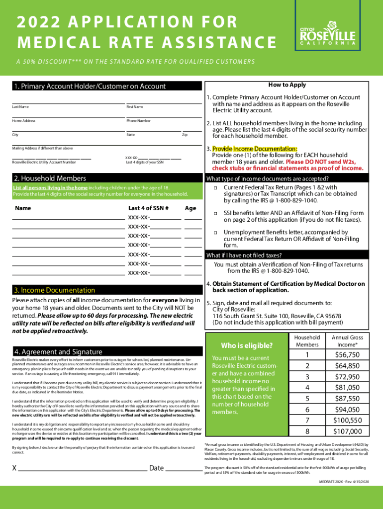 2 0 2 2 A P P L I C AT I O N F O R M E D I C A L R AT E A S S I S TA N C E A 5 0 % D I S C O U N T * * * O N T H E S TA N D A R D R AT E F O R Q U A L I F I E D C U S T O M E R S How to Apply1. Primary
