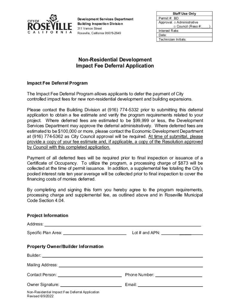 Staff Use Only Permit #: BD Approval: Administrative Council (Rest #:___) Interest Rate: Date: Technician Initials:Development Services Department Building Inspection Division 311 Vernon Street Roseville,