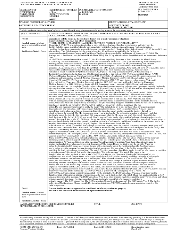Get the free Nursing Home Survey Report Details for BATESVILLE HEALTHCARE LLC on 06/03/2020. Surv...