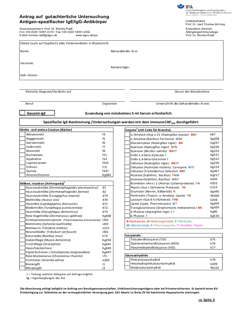 Get the free Antrag auf gutachterliche Untersuchung Antigen-spezifischer ...