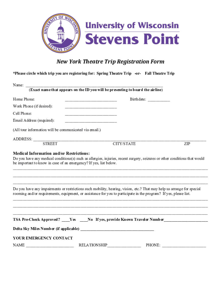 Get the free New York Theatre Trip Registration Form - queens.edu