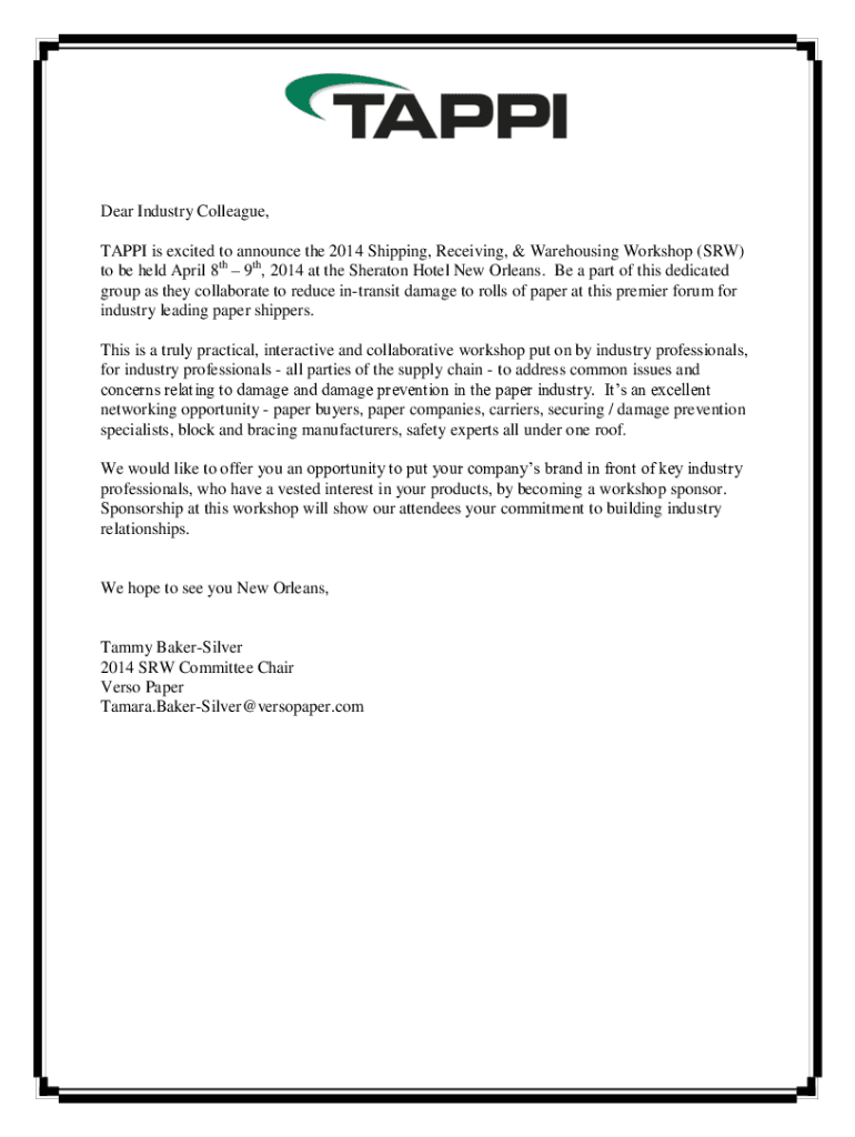 Dear Industry Colleague, TAPI is excited to announce the 2014 Shipping, Receiving, & Warehousing Workshop (SAW) to be held April 8th 9th, 2014 at the Sheraton Hotel New Orleans. Be a part of this