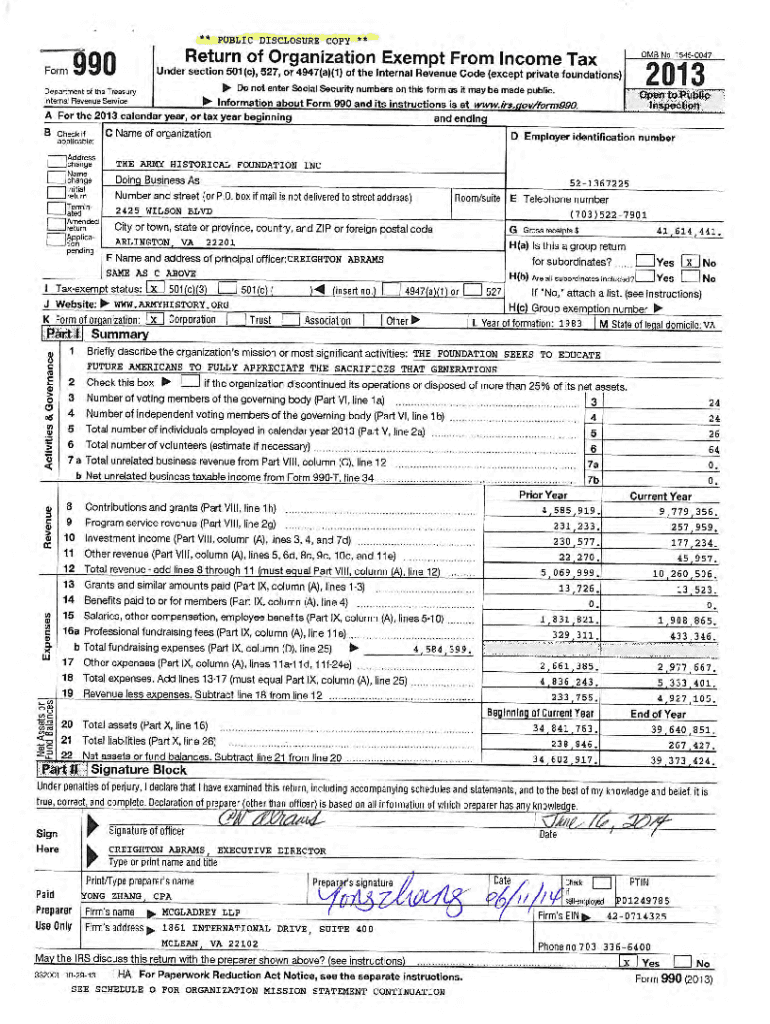 THE ARMY HISTORICAL FOUNDATION INC Part III Statement of Program Service Accomplishments521367225Form 990 (2013)1Page 2Check if Schedule O contains a response or note to any line in this Part III