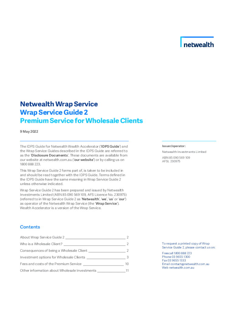 Net wealth Wrap Service Guide 2 Premium Service for Wholesale Clients 9 May 2022The IDPs Guide for Net wealth Accelerator (IDPs Guide) and the Wrap Service Guides described in the IDPs Guide are referred