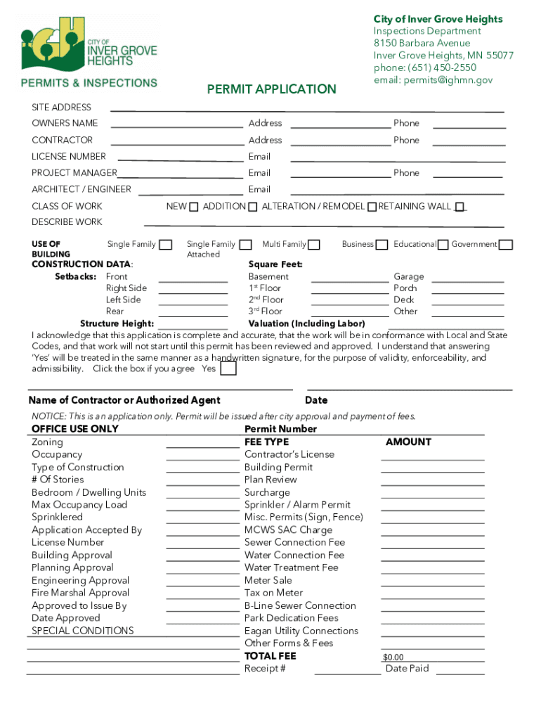 To fill out an Inver Grove Heights demolition permit, you will need to provide information about the building to be demolished, including the location, type of structure, and proposed demolition method.