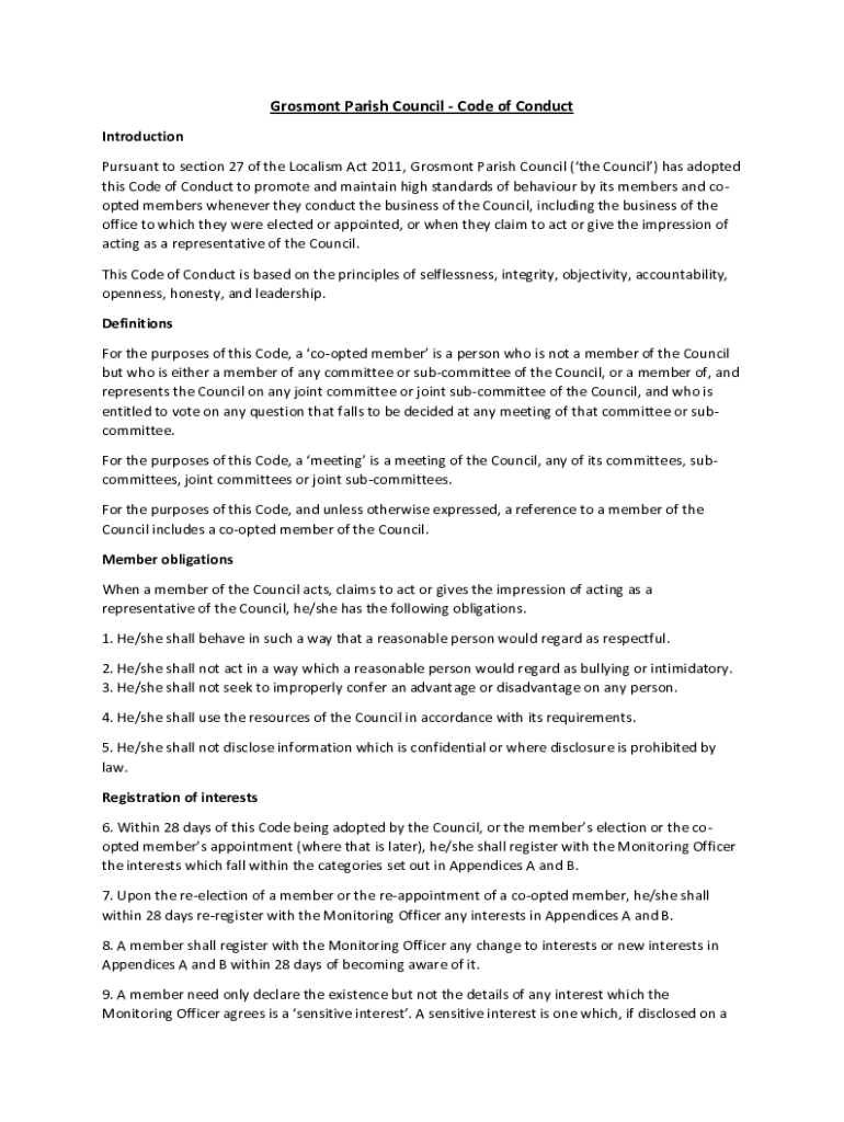 Get the free Grosmont Parish Council - Code of Conduct