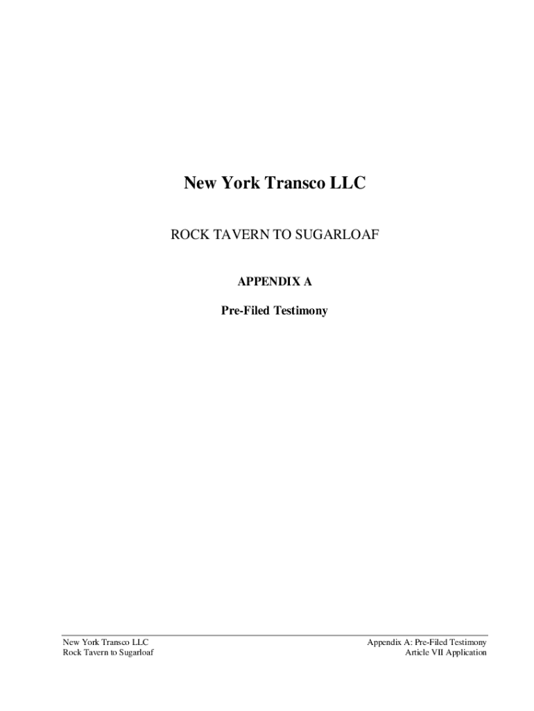 New York Transco LLC ROCK TAVERN TO SUGARCOAT APPENDIX A Prefixed Testimony York Transco LLC Rock Tavern to SugarloafAppendix A: Prefixed Testimony Article VII Applications page intentionally left