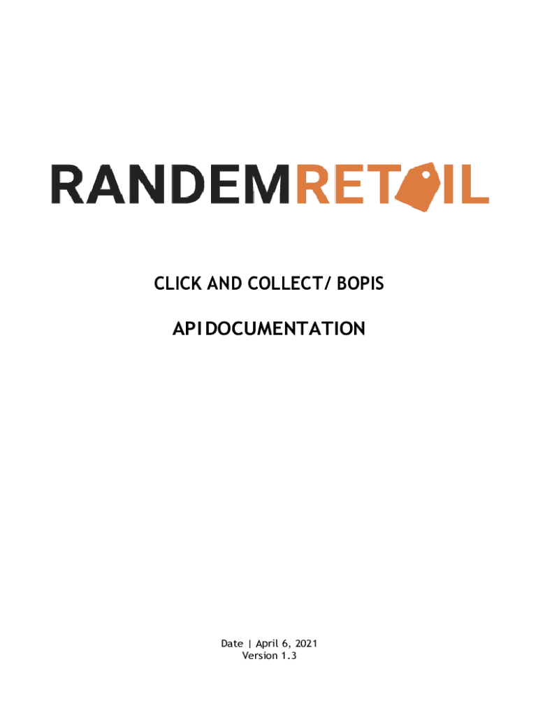 CLICK AND COLLECT / BORIS API DOCUMENTATIONDate | April 6, 2021, Version 1.3DOCUMENT HISTORY Version #DateUpdated byChanges1.07/15/2020Ann Margaret Carreon1.21/4/2021Michael RaynerCleansing of documentation1.36/4/2021Michael