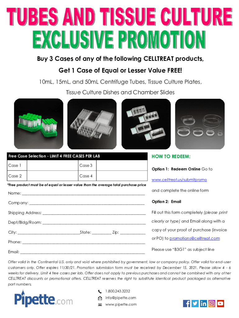 Get the free Buy 3 Cases of any of the following CELLTREAT products, Get 1 ...