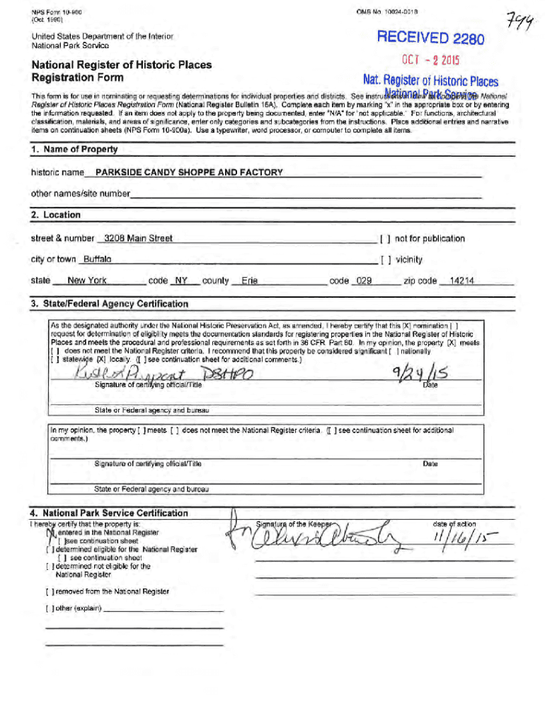 0 MB No. 100240018NPS Form 10900 (Oct. 1990)RECEIVED 2280United States Department of the Interior National Park Service 2 2015National Register of Historic Places Registration Format. Register of