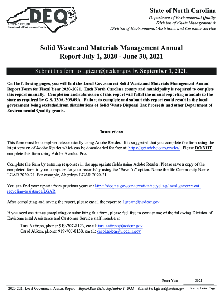 State of North Carolina Department of Environmental Quality Division of Waste Management & Division of Environmental Assistance and Customer ServiceSolid Waste and Materials Management Annual Report