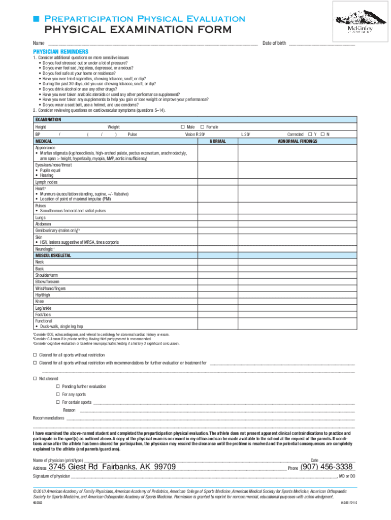 Get the free Online Preparticipation physical evaluation form - HISTORY ...