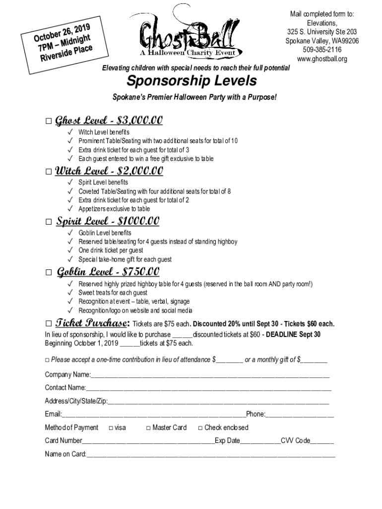 Spokane's Premier Halloween Party with a Purpose! Benefitting Elevations: A Children's Therapy Resource FoundationElevating children with special needs to reach their full potential October 26, 2019,
