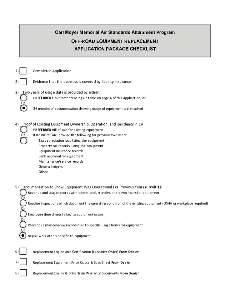 OFFLOAD EQUIPMENT REPLACEMENT INSTRUCTIONS AND ELIGIBILITY CRITERIA Instructions Please print clearly or type all information on the Application and submit along with items on the Applicant Checklist