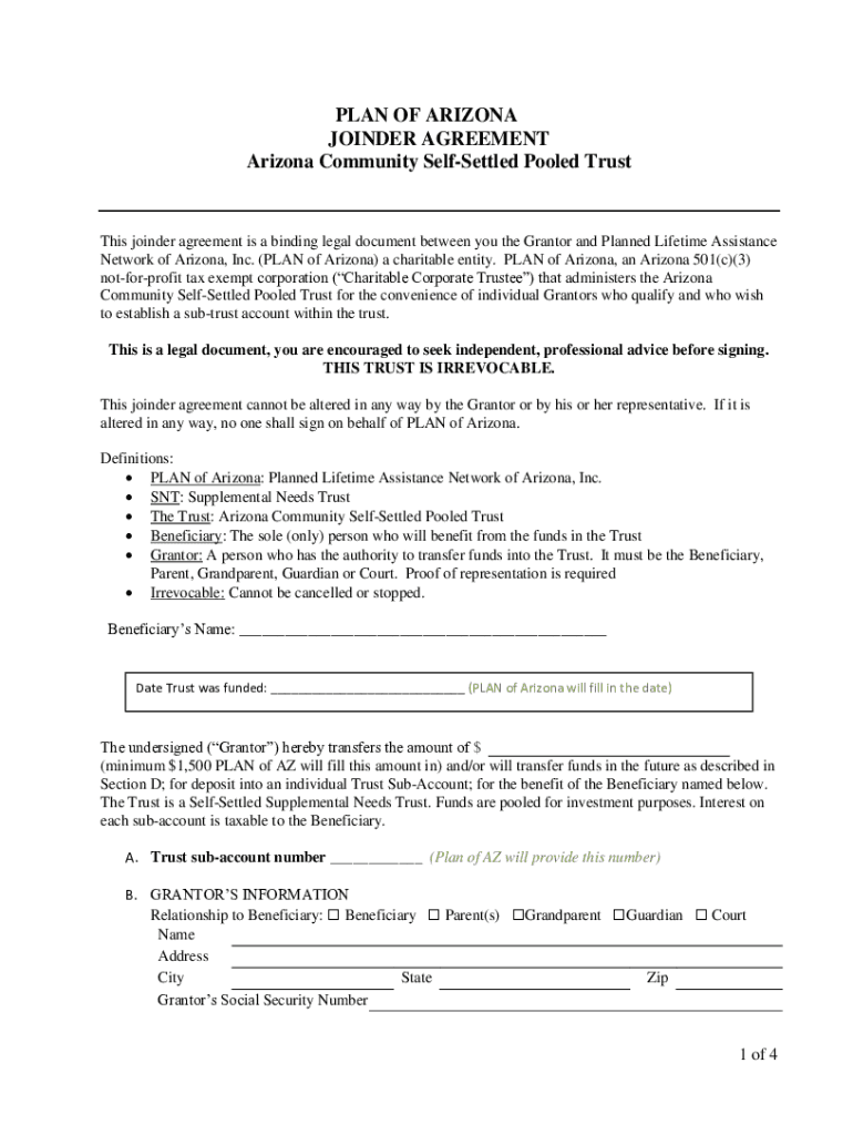 Get the free PLAN OF ARIZONA JOINDER AGREEMENT Arizona Community Self-Settled Pooled ...