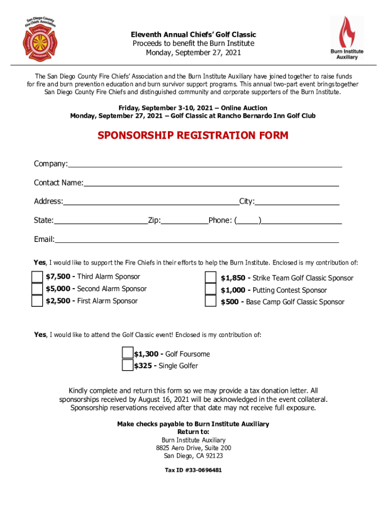 Participants and sponsors of the burninstituteorgeventchiefs-golf-classic-22021 chiefs golf classic are required to file registration forms and financial contributions.