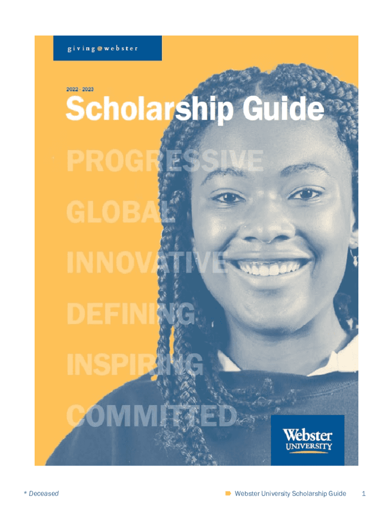 * Deceased Webster University Scholarship Guide1* Deceased Webster University Scholarship Guide2Table of Contestable of Contents .......................................................................................................................................................3