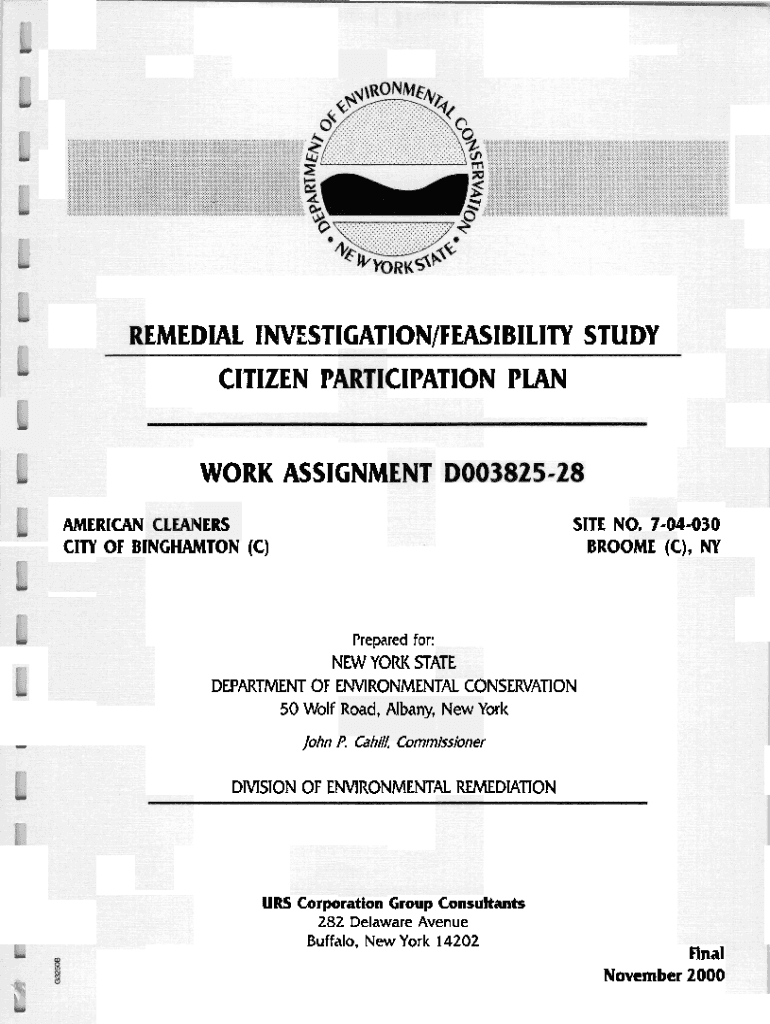 MEDIAL INVESTIGATION/FEASIBILITY STUDY CITIZEN PI Creation PLAN WORK ASSIGN SITE N4AMERICAN USERS c l n OF BINGHAMTON (c)4030BROOME (C), Prepared for:NEW YORK ST1 DEPARTMENT OF ENVIRONMENT. CONSERVATION