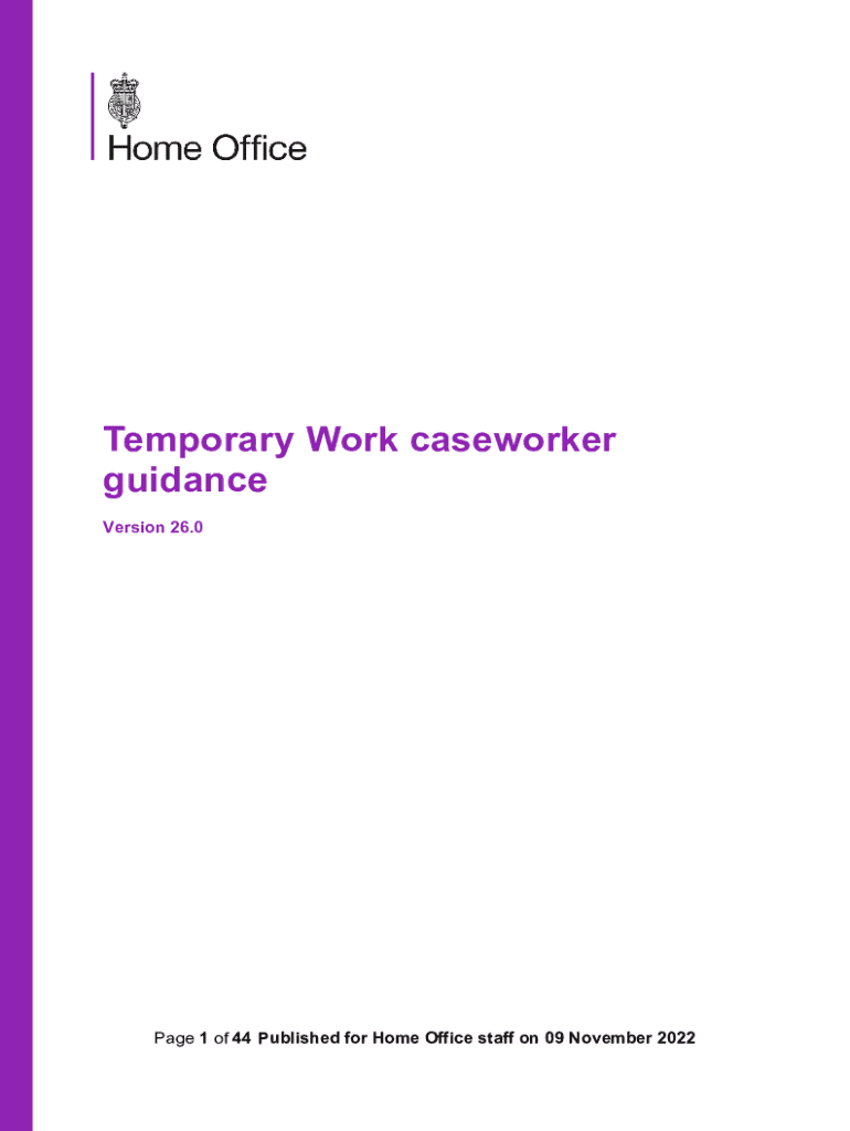 Temporary Work caseworker guidance Version 26.0Page 1 of 44 Published for Home Office staff on 09 November 2022Contents Contents.........................................................................................................................