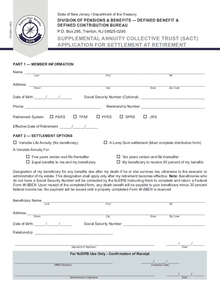 Obtain the necessary forms from the New Jersey Department of Public Safety, State Treasury Division.