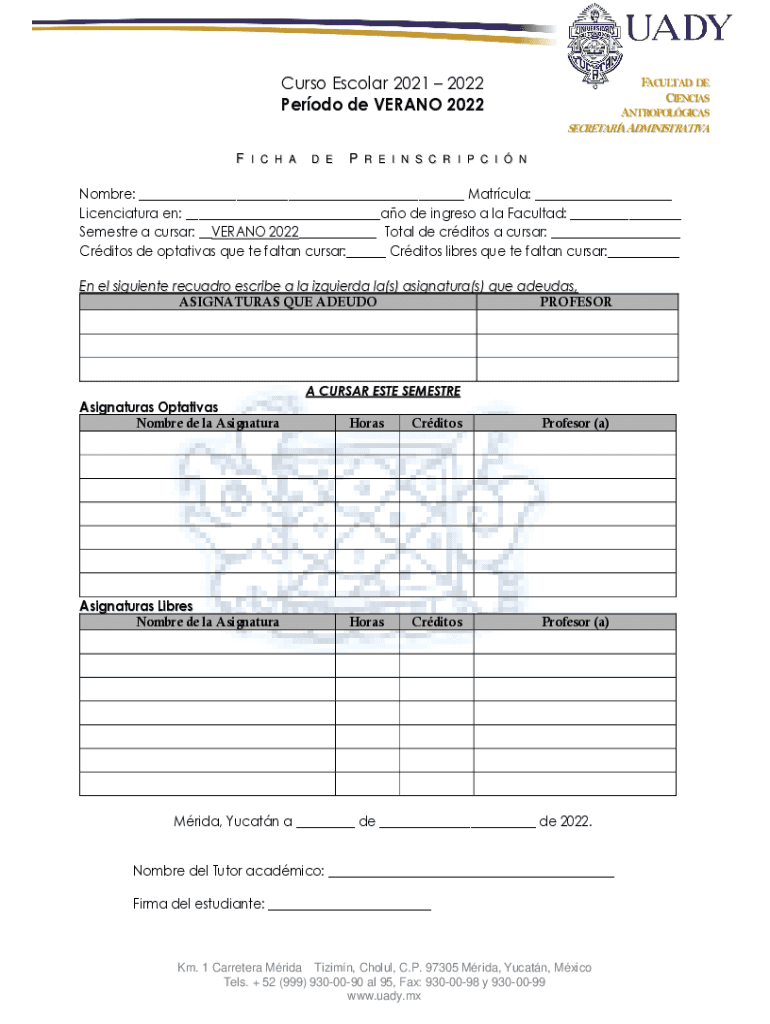 To fill out nombre matrcula licenciatura ao, students must provide their personal information and program details.