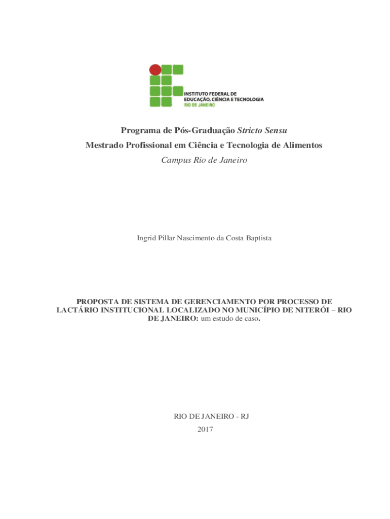 Program de PsGraduao Strict Sense Estrada Professional em India e Technology de Alimentos Campus Rio de JaneiroIngrid Pillar Nascimento the Costa BaptistaPROPOSTA DE SYSTEM DE GERENCIAMENTO POR PROCESS