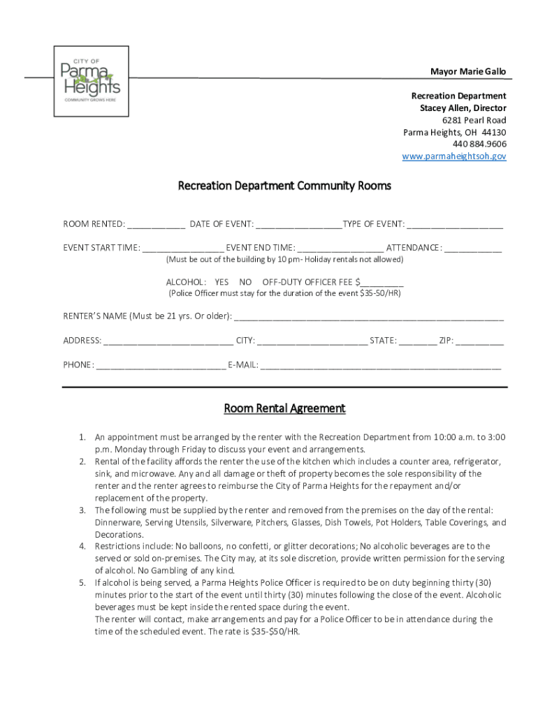 Get the free Recreation Department Community Rooms Room Rental Agreement