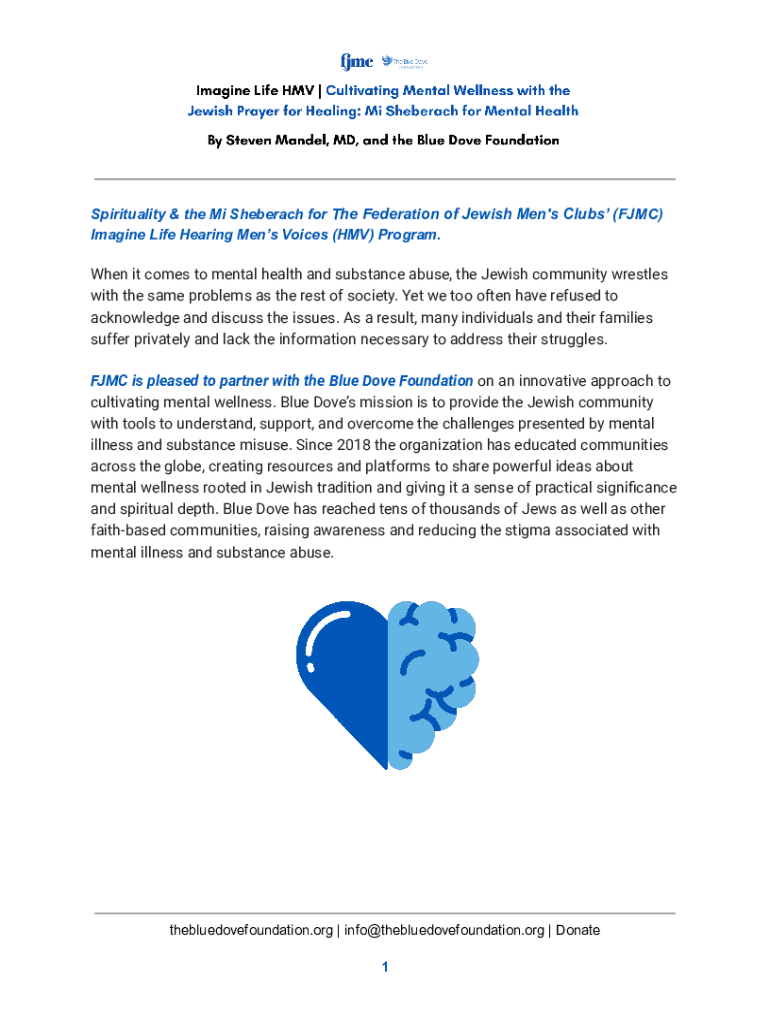 Spirituality & the Mi Sheberach for The Federation of Jewish Men\'s Clubs (FMC) Imagine Life Hearing Men Voices (HMV) Program. When it comes to mental health and substance abuse, the Jewish community