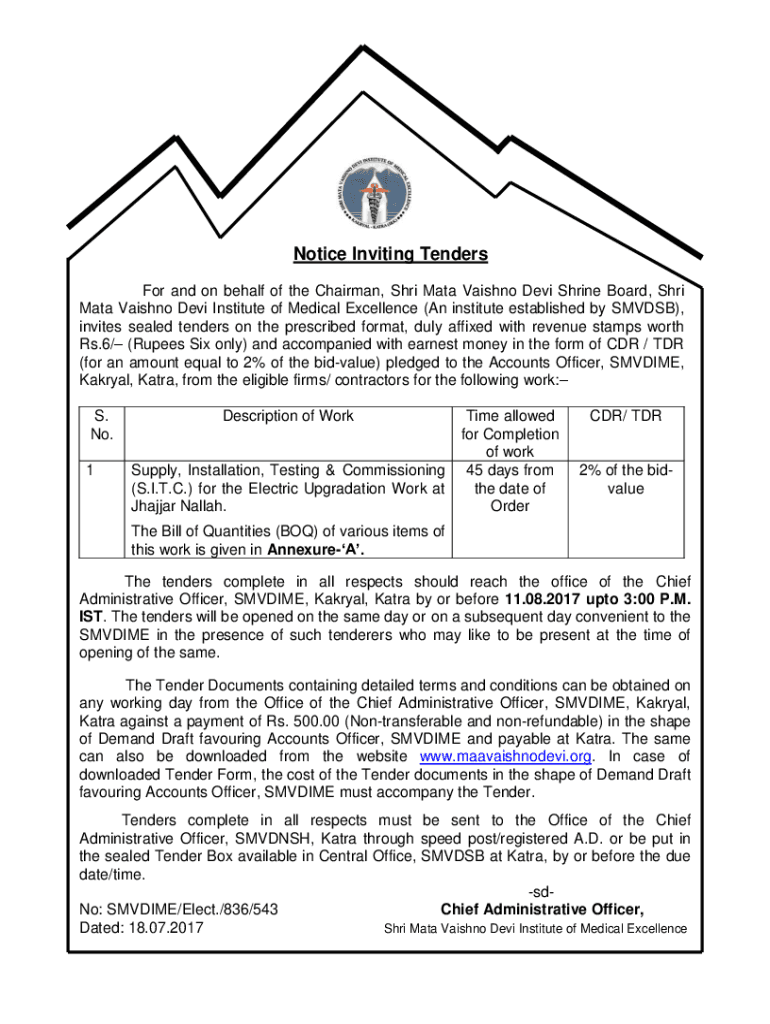 Get the free Notice Inviting Tenders