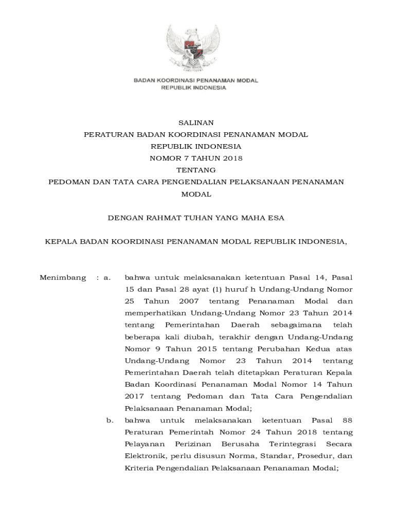 SALINAS PERTURB BADEN COORDINATE PANAMA MODAL REPUBLIC INDONESIA NOOR 7 TAH UN 2018 TENTING YEOMAN DAN TATA CARA PENGENDALIAN PELAKSANAAN PANAMA MODAL BEGAN RAH MAT THAN YANG MAYA ESA KERALA BADEN